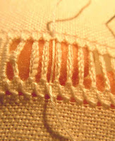 Ed ora come procedere per l'ultima sfilatura , preparare le barrette con il punto quadro.