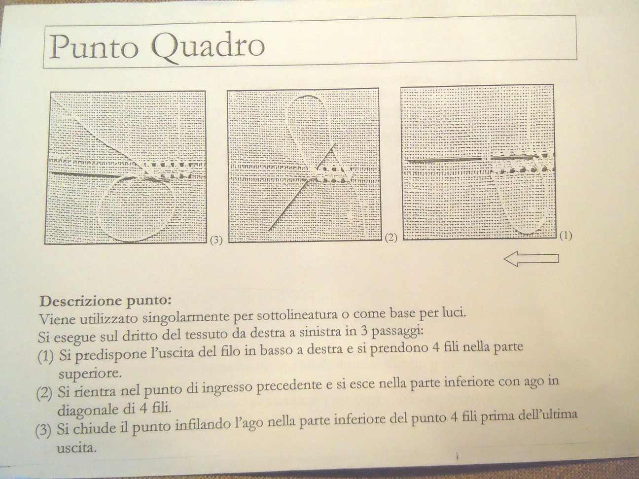 Io il punto quadro lo lavoro anche con il telaio a voi la scelta, sul telio o sul dito.
