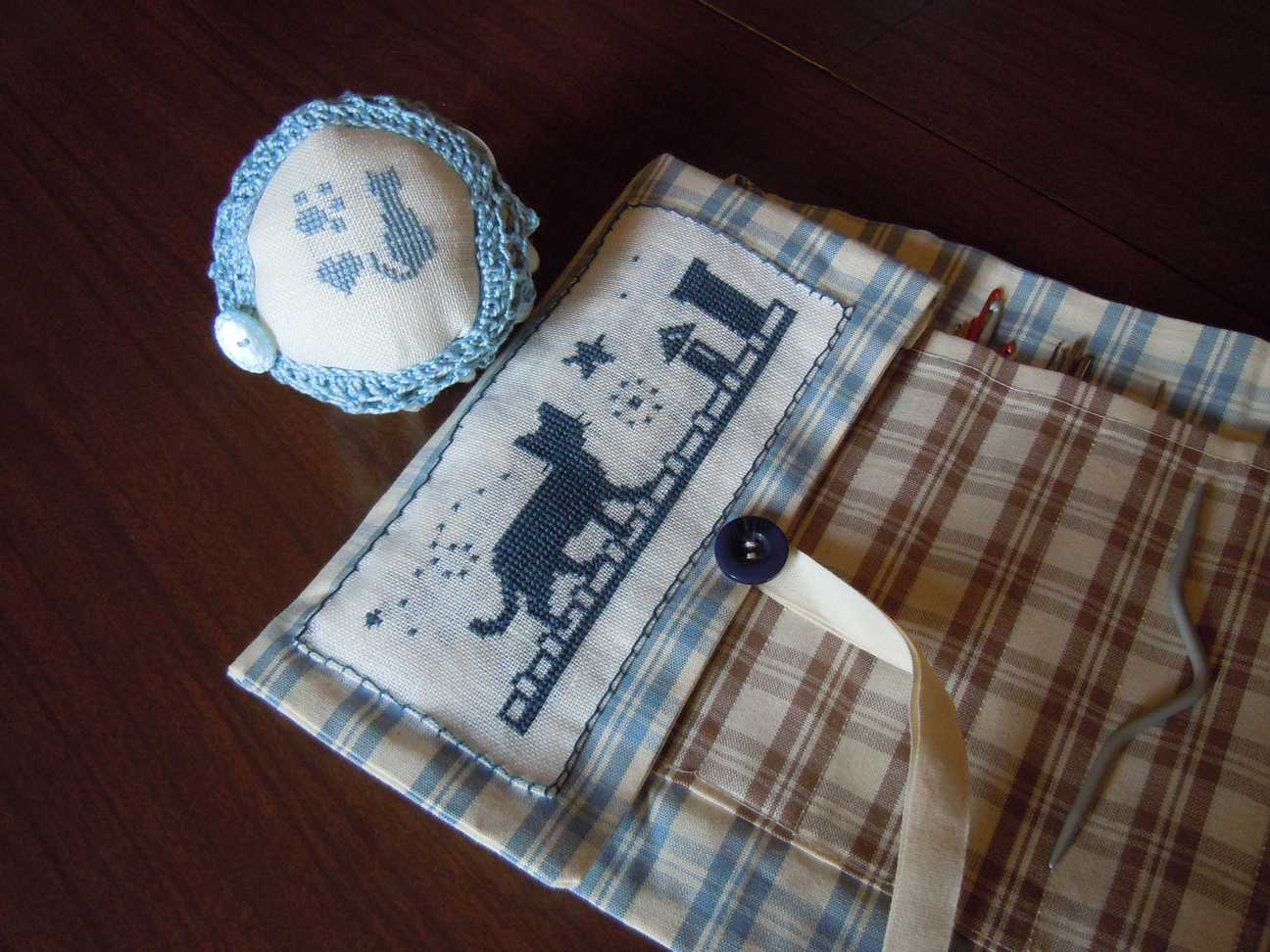 Un bel contenitore per uncinetti e altro per la maglia,bella la chiusura, rigorosamente in azzurro, il colore preferito.
